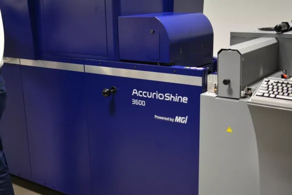 Ключов момент е обогатяването на печата – процес, който трансформира обикновения лист в изключително атрактивен и висококачествен печатен продукт. Това включва полагането на UV лак и фолио, които добавят стойност и осигуряват по-различно потребителско изживяване. В шоурума на Коника Минолта е изложен най-компактният представител от серията системи за облагородяване – AccurioShine 3600.