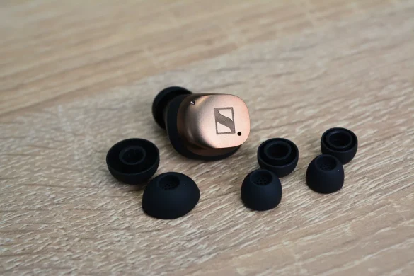 Корпусът на слушалките е достатъчно голям, за да изпъква осезаемо извън ушите. Високоговорителите имат диаметър 7 мм. Sennheiser гарантира, че можем да ги поставим сигурно в мидата на ухото с три различни размера силиконови конуси. Все пак ако човек има твърде малки уши, може да му се стори, че слушалките са големи, за да ги натъпче в ухото си.
