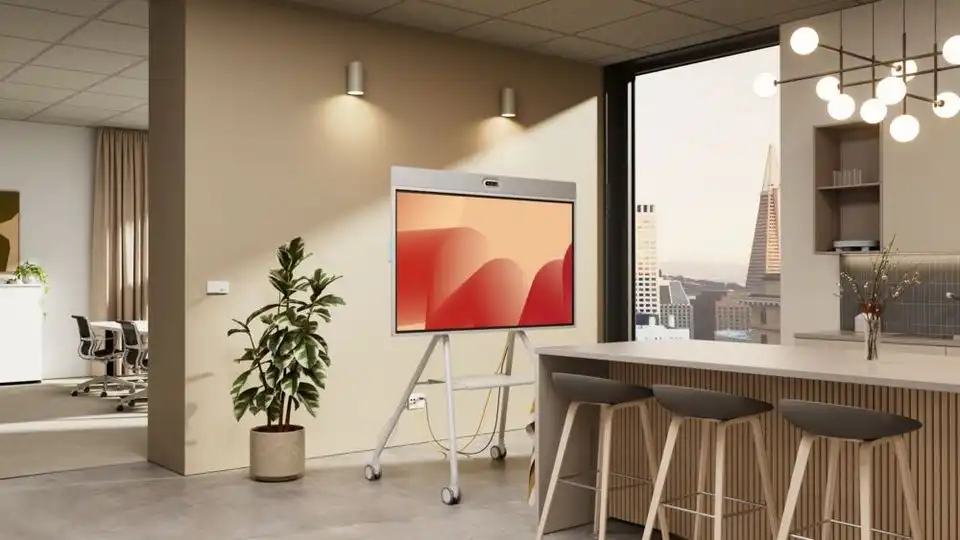 В устройството са интегрирани високоговорители и beamforming микрофони, което осигурява лесно придвижване в друго помещение при нужда (с помощта на допълнителния аксесоар Cart) и елиминиране на нуждата от каквито и да е допълнителни инсталации.