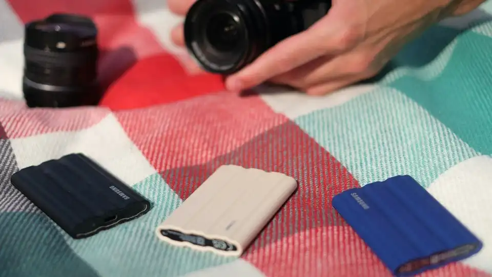 Освен това съвременните външни дискове са компактни и леки, така че лесно се побират в раница, чанта или дори джоб на яке. З допълнение, споменатият T7 Shield Е е прахо- и водоустойчив в съответствие със стандарта IP65.