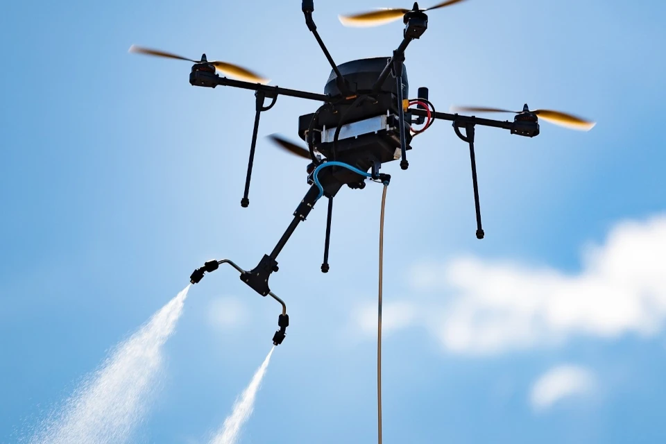 Мултироторният безпилотен летателен апарат се свързва към помпена система на земята. Оборудван е със система за светлинно разпознаване и определяне на разстоянието (LiDAR), заедно с камери с висока разделителна способност.