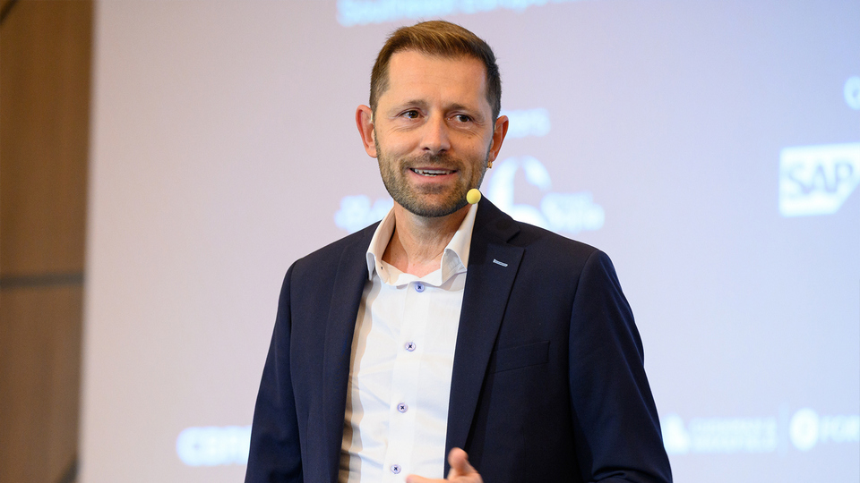 „Секторът за иновации и бизнес услуги доказва, че може да бъде двигател на устойчив растеж”, каза Йордан Гинев, председател на AIBEST (снимка: SEE ITS Summit 2025)