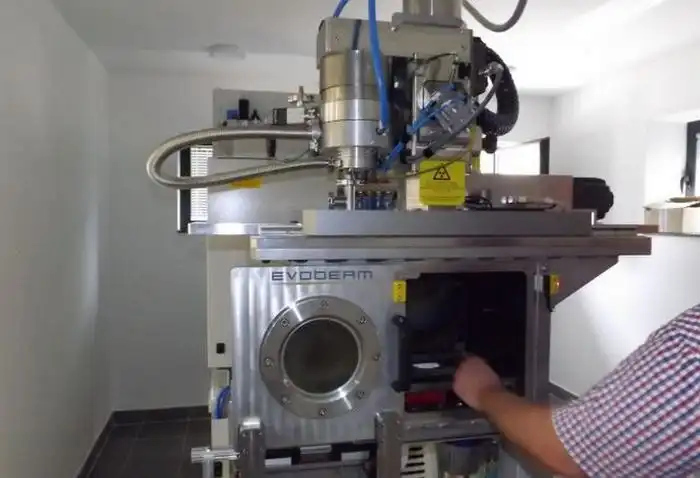 Иновативната лазерна система Evobeam cube 400, използвана в изследванията (снимка: Институт по електроника на БАН)