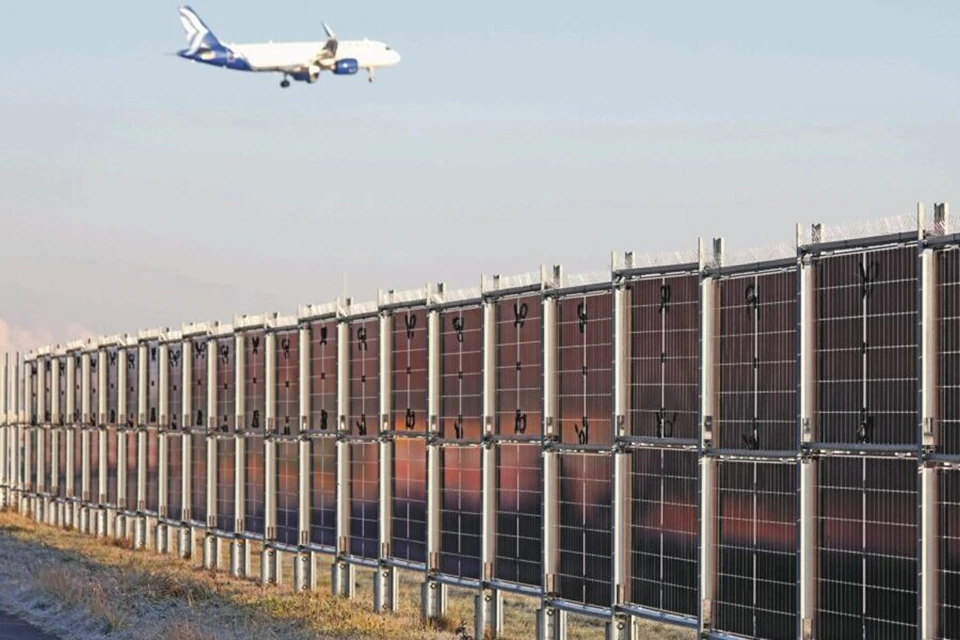 Фотоволтаична система с 37 000 вертикално монтирани слънчеви модули заработи на летището на Франкфурт. Тя се простира на дължина от 2,8 км по протежение на западната писта.
