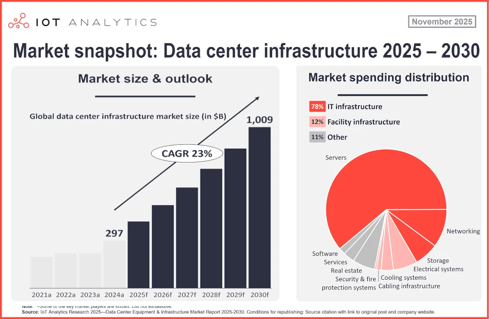 „На път сме да достигнем 1 трилион долара разходи за оборудване за центрове за данни – за сървъри, захранващи системи, охлаждане и други инфраструктурни компоненти,“ каза Кнуд Ласе Лует, главен изпълнителен директор на IoT Analytics.