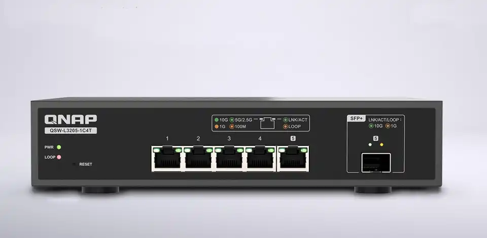 QNAP Systems пусна на пазара нов 5-портов, изцяло 10GbE Lite-managed комутатор. Моделът QSW-L3205-1C4T разполага с четири 10GbE мулти-Gigabit RJ45 порта и един 10GbE SFP+/RJ45 комбо порт.