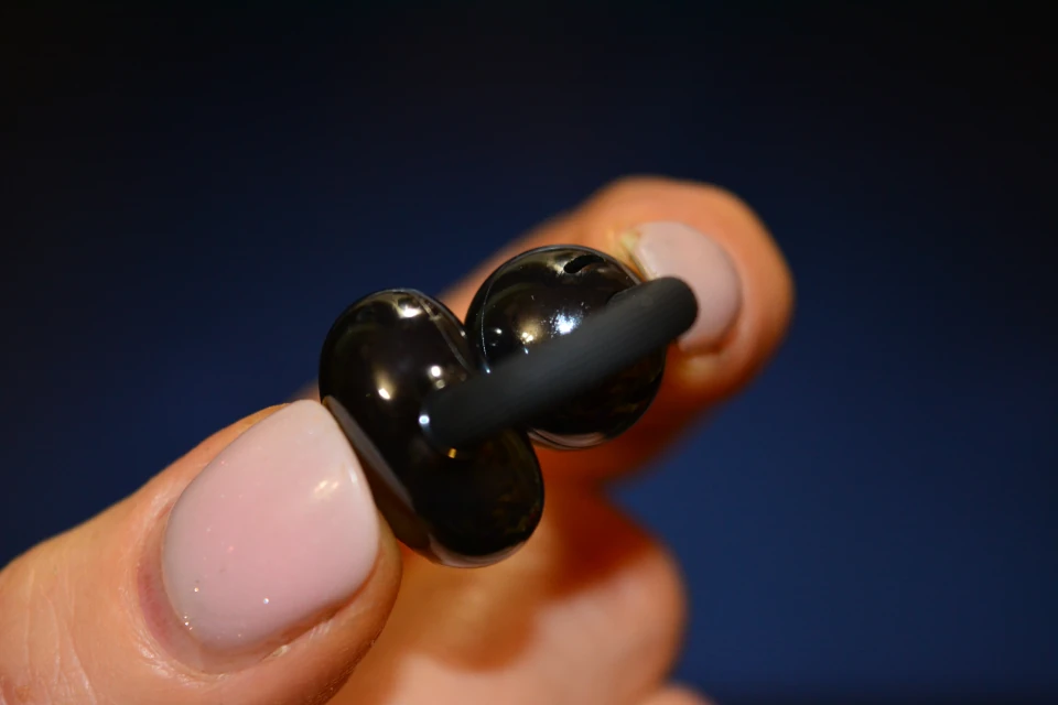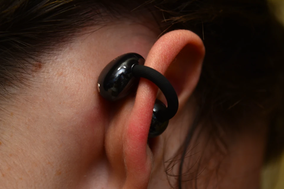 Вместо това FreeClip 2 имат C-образна мостова извивка, която се закопчава върху ушната мида подобно на една от онези обеци, които се монтират без пробиване на хрущяла. Няма натиск вътре в ушния канал, затова е по-удобно, а е и по-хигиенично – без дълбоко поставяне означава по-малко натрупване на влага и бактерии.