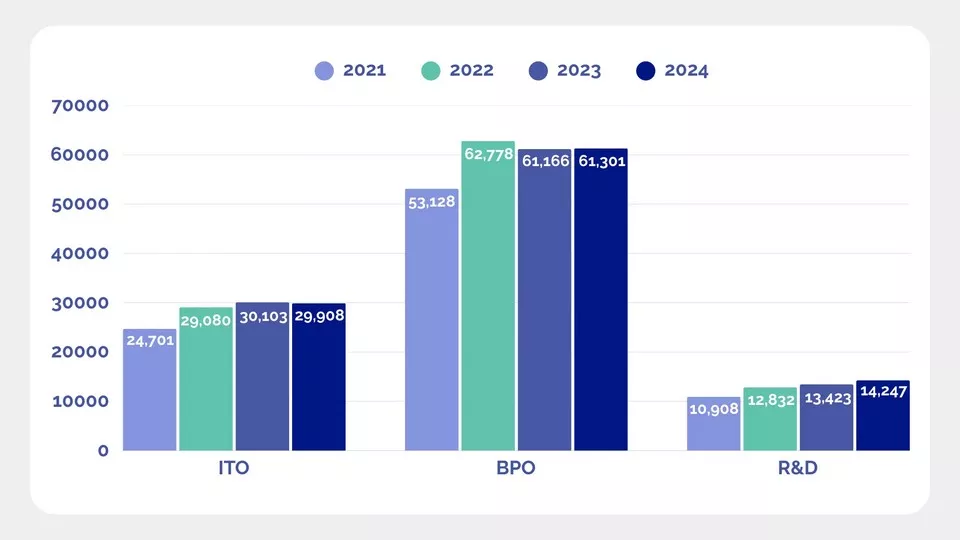 Въпреки стабилизирането на заетостта, секторът продължи да постига солиден ръст на приходите, отразявайки преминаването към услуги с по-висока стойност и интензивно използване на знания и укрепвайки позицията на България като конкурентна регионална дестинация.