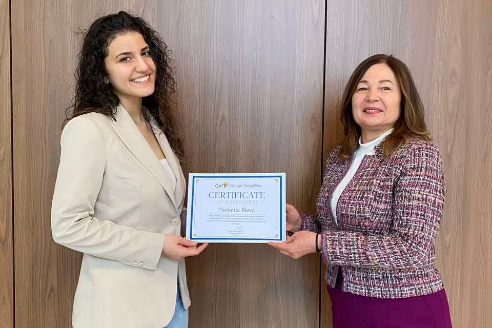 Пламена Илиева е стипендиант на Google DeepMind AI чрез институт GATE за 2025-2026 г., съобщиха от образователната институция. Стипендията е част от международна инициатива на AI компанията, насочена към подкрепа на мотивирани студенти в областта на изкуствения интелект и компютърните науки.