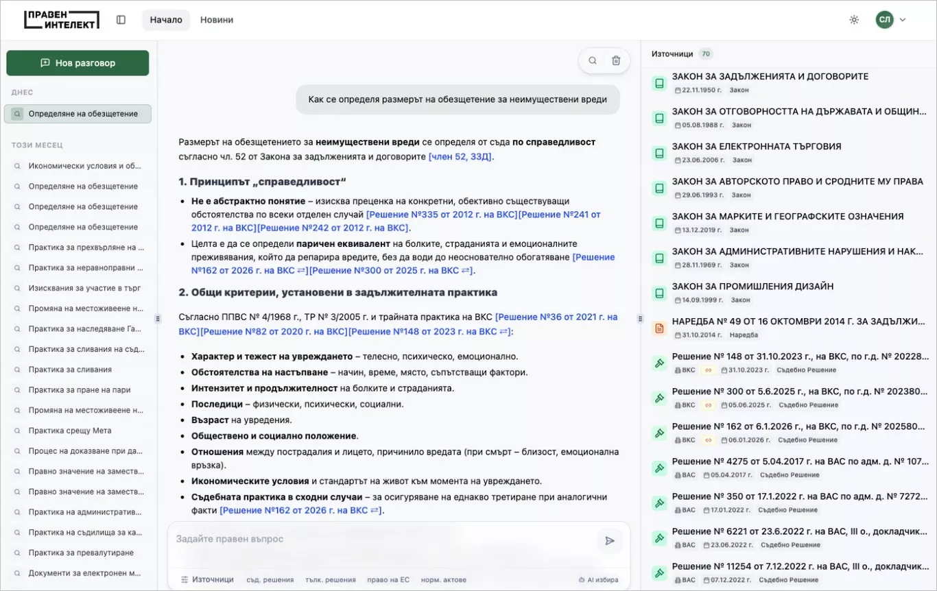 Излезе нова версия на AI асистента “Правен интелект”, който е достъпен през уеб или като мобилно приложение. Актуализацията идва с мащабно разширение на базите данни за правни проучвания.