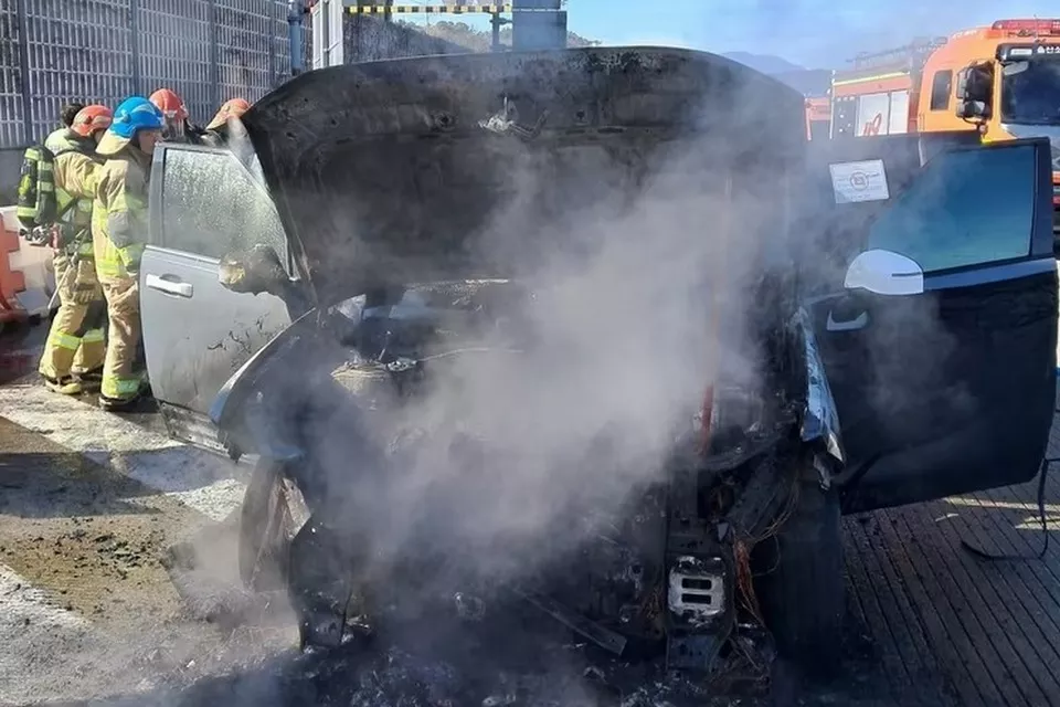 Новото превозно средство беше напълно унищожено при масивен пожар, избухнал по време на тестово шофиране на кросоувъра на магистрала в Улсан, Южна Корея, съобщи за инцидента порталът News1.kr.