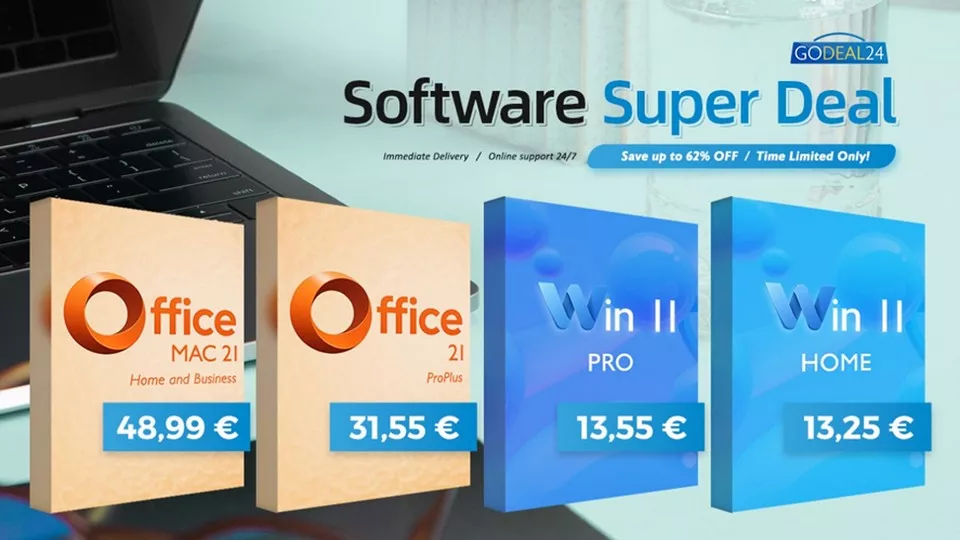 Сега можете да се сдобиете с Microsoft Office 2021 и Windows 11 завинаги, започвайки от само €13 по време на кампанията Godeal24 Super Sale! Купете MS Office Professional 2021 само за €31,55 (редовна цена €249) и ще имате безпрецедентни нива на производителност за цял живот!