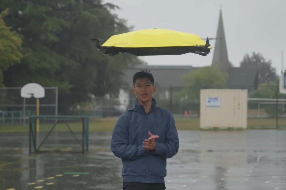 Летящият чадър е създаден от ютюбъра Джон Сю от канала I Build Stuff. Той за първи път направи чадър, задвижван от дрон, през 2024 г. и това без съмнение беше страхотен подвиг. Зрителите обаче бързо посочиха очевидния недостатък: чадърът трябваше да се управлява с ръчен контролер.