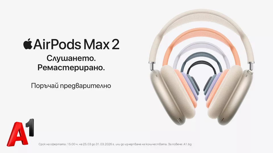 A1 даде старт на предварителните поръчки на новите Apple AirPods Max 2 – премиум безжични слушалки, които надграждат емблематичния over-ear дизайн с още по-високо качество на звука, интелигентни функции и усъвършенствано шумопотискане.