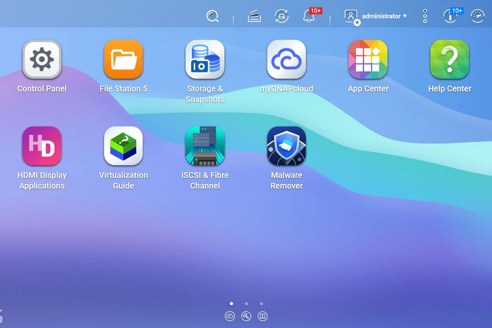 Първоначално влизаме в машината през браузър, като въвеждаме IP адреса на NAS-а и ни посреща работен плот с икони: